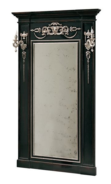 Miroir Lacquared avec des décorations marquetés et colonnes latérales