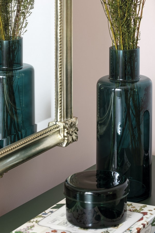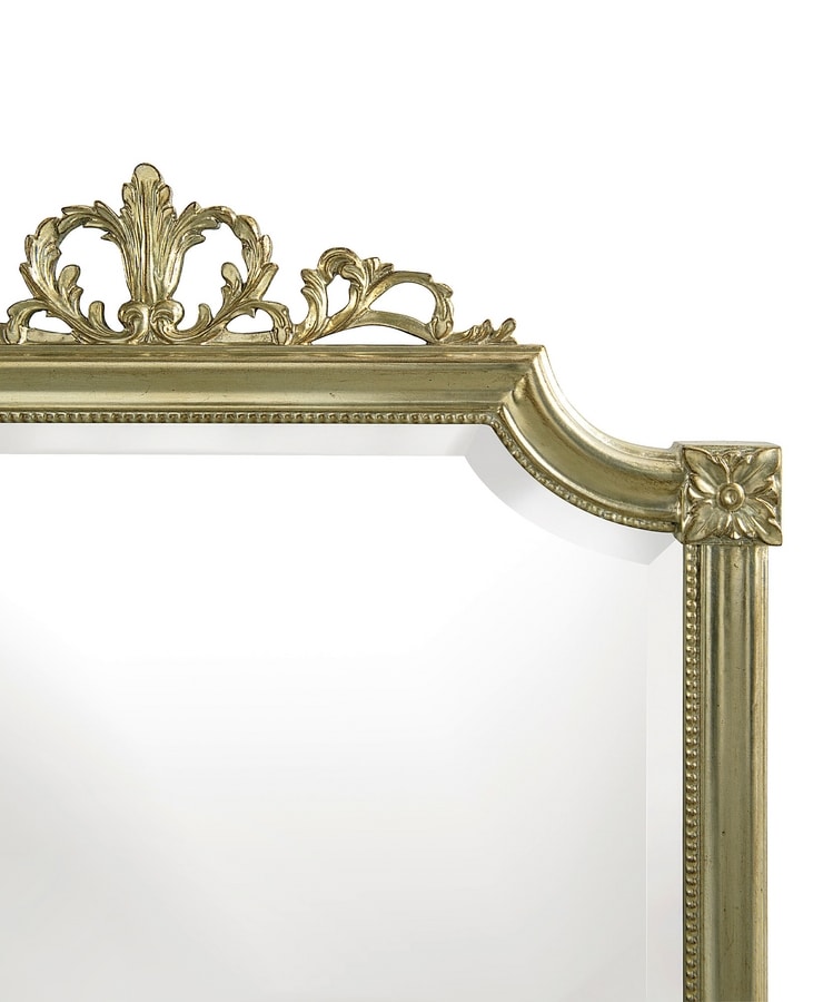 Le miroir avec cadre sculpté, finition feuille d'or argenté, donne à l'environnement une touche de majesté et d'élégance.
