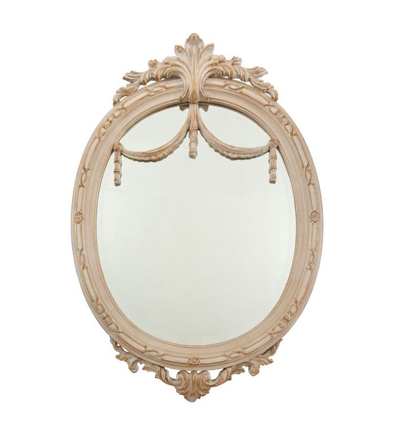 Cadre en bois sculpté avec miroir, finition LAFM laqué brossé tempera blanc meringue avec base feuille d'or.