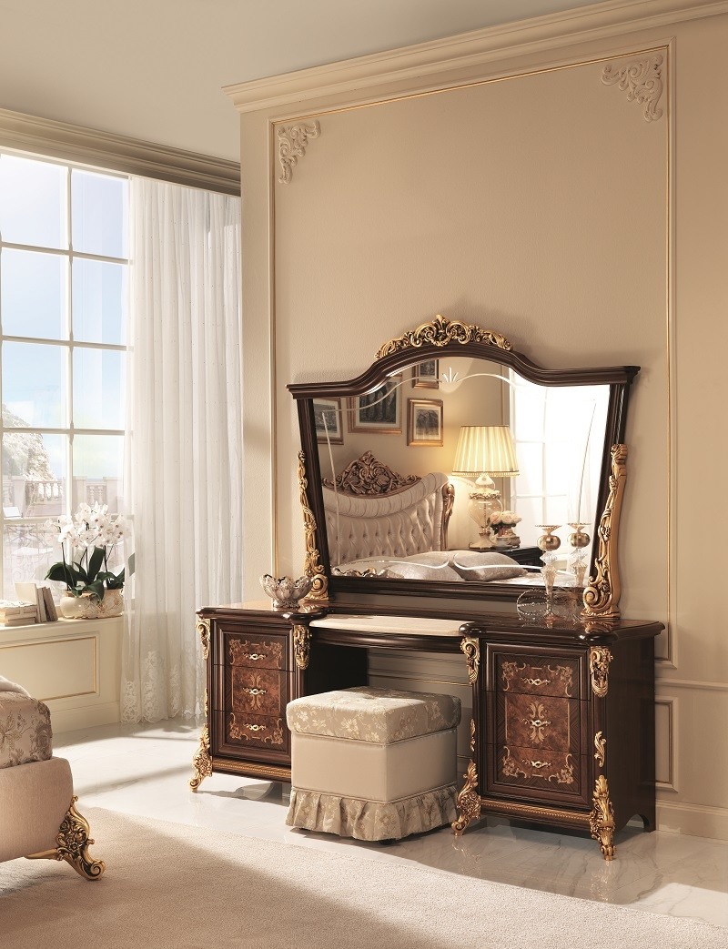 L'aire de repos de la collection Sinfonia est opulent, précieux et élégant. Un mouvement de base intense caractérise toute la collection dans la tradition dictée par la conception baroque italien. La dorure lumineuse rend chaque pièce spéciale avec rien laissé au hasard: les miroirs finement travaillés à la décoration des pieds de chaque ameublement. A hark de l'âge de la conception classique italienne d'or dans un ensemble de conception tourbillon de lignes sinueuses, exsudant pathos et le théâtre.