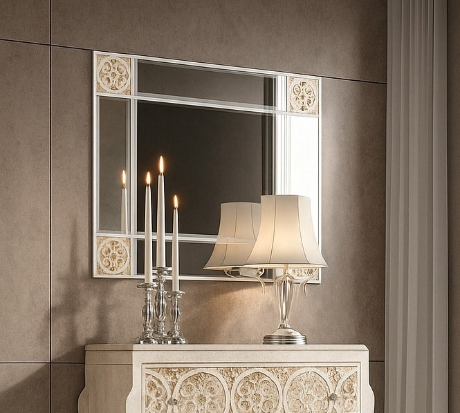 Miroir avec des lignes épurées et des détails géométriques