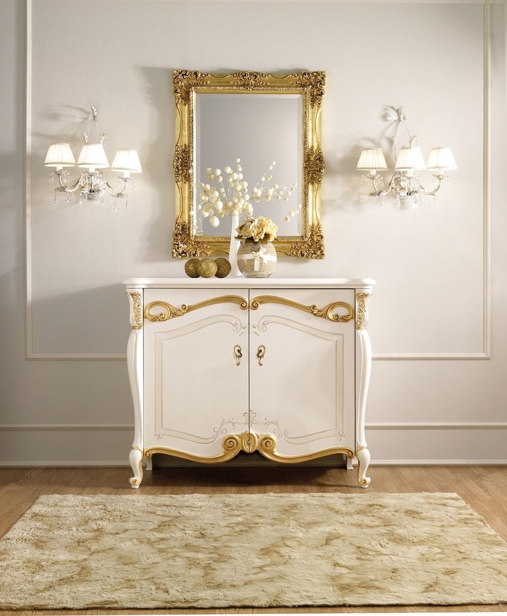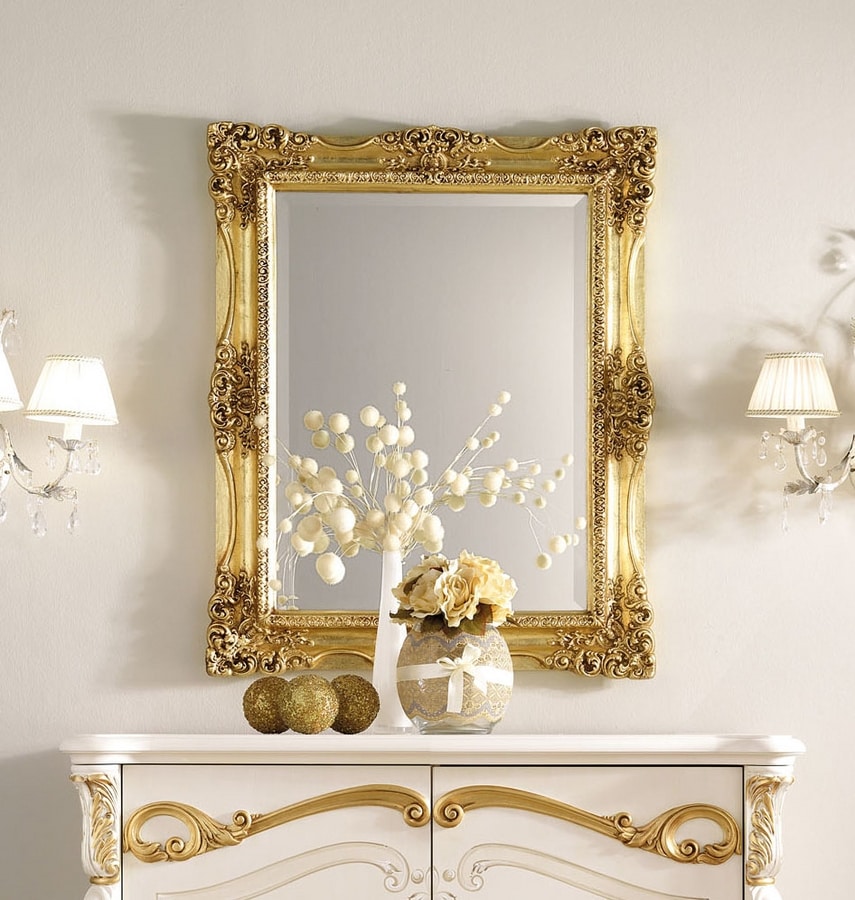 Miroir couleur feuille d'or sculpté.