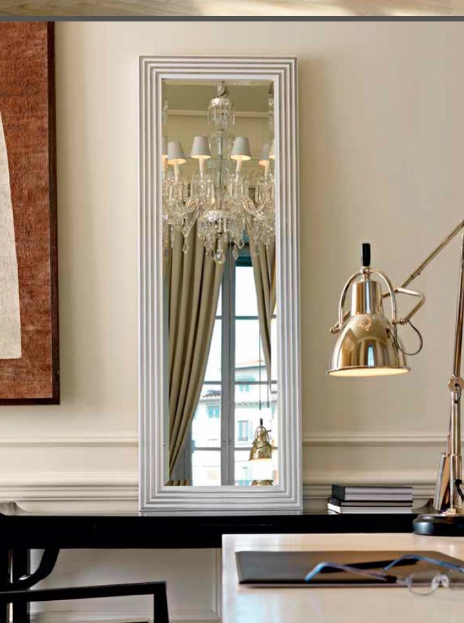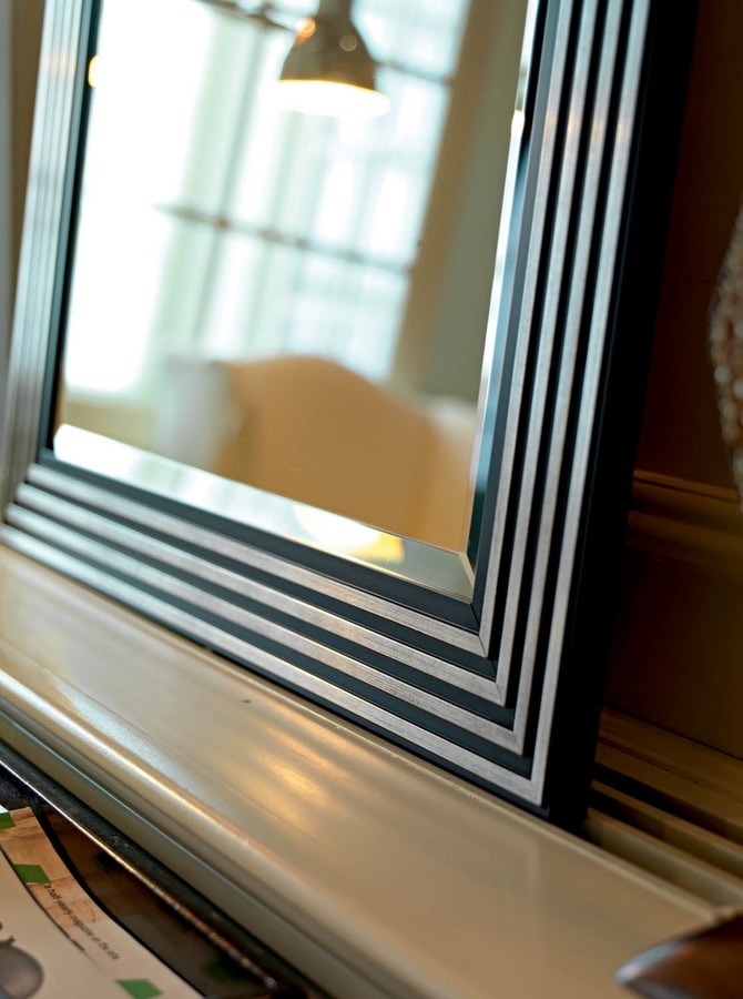 Moulure en bois argent / blanc ou argent / noir avec miroir à facettes.