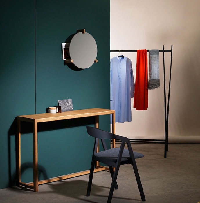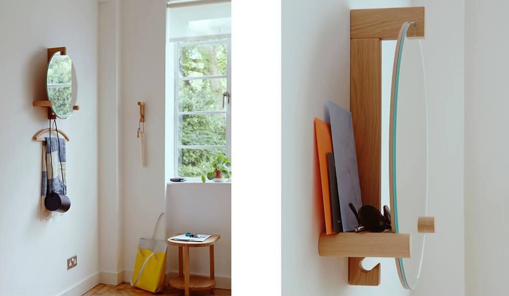 June est un miroir rond avec une étagère secrète et un crochet. Compact, fonctionnel et robuste, il est conçu pour les petits espaces et les espaces intermédiaires. Un merveilleux ajout à n'importe quel couloir et intérieur.
