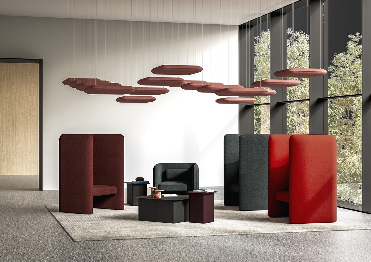 Demander prix Produits similairesLe panneau acoustique suspendu Kumo d’IBEBI, de forme rectangulaire, allie à la perfection raffinement et fonctionnalité. Il est idéal pour assurer le confort acoustique nécessaire au sein des espaces professionnels modernes. Parfait pour les bureaux et les espaces de travail partagés, Kumo CL est doté d’une structure solide en bois et est garni de polyuréthane revêtu de tissu, non déhoussable. L’importance du confort acoustique dans les espaces de travail, tels que les open-spaces et les espaces partagés, ne cesse de croître. Un environnement calme est essentiel pour promouvoir une qualité de travail élevée et assurer le bien-être des personnes. Le panneau acoustique Kumo CL offre une solution efficace, sur mesure et polyvalente. Le panneau Kumo CL incarne la philosophie d’IBEBI qui consiste à répondre aux besoins d’espaces professionnels de plus en plus dynamiques à travers la polyvalence de son mobilier, améliorant ainsi l’expérience de travail. Ce panneau acoustique suspendu en forme de nuage rectangulaire contribue à améliorer la qualité du travail et la productivité grâce à sa capacité à réduire les nuisances sonores ambiantes.