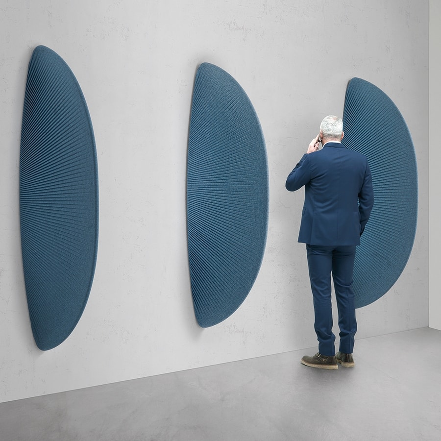 Il s'agit d'une structure tridimensionnelle phono-absorbante : une sculpture qui fait penser à la nageoire d'un grand poisson qui s'ouvre en éventail, avec une courbure ondoyante, évoquée par les plis du tissu plissé qui la composent. PINNA crée un dialogue entre différents savoir-faire; la technologie intrinsèque de Snowsound Fiber s'unit aux techniques textiles et aux matériaux typiques de la haute couture.