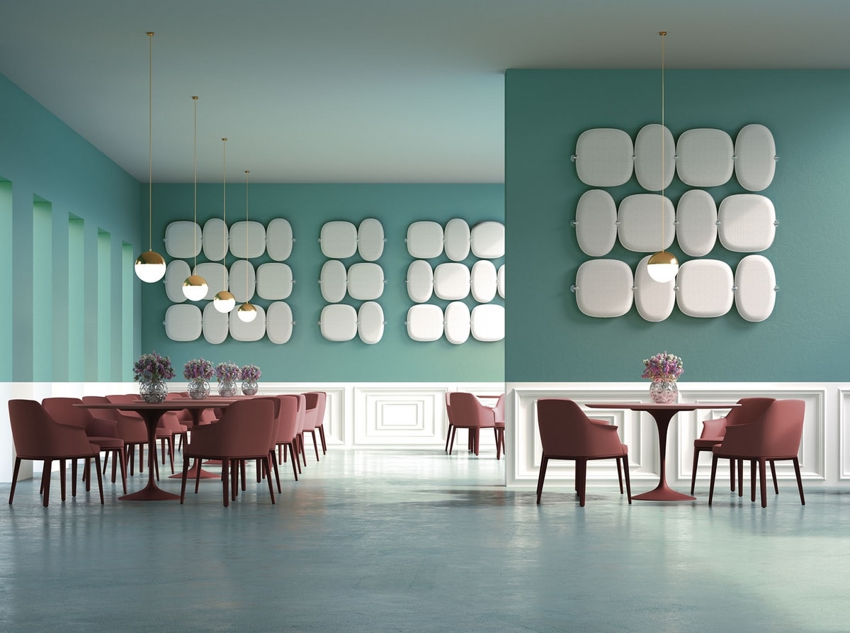 Snowgems est un système ouvert, qui crée des solutions aux formes souples en mesure d’améliorer la qualité acoustique et esthétique des intérieurs.