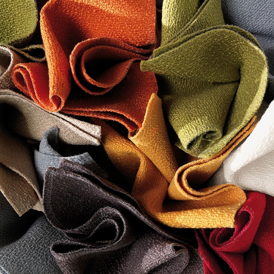FIBER 1 - tissu acoustique de couleur unie avec renforcement de type SABLÉ. Le tissu ne présente pas de direction précise, ce qui permet de le travailler et le couper selon différentes formes.