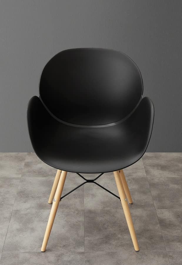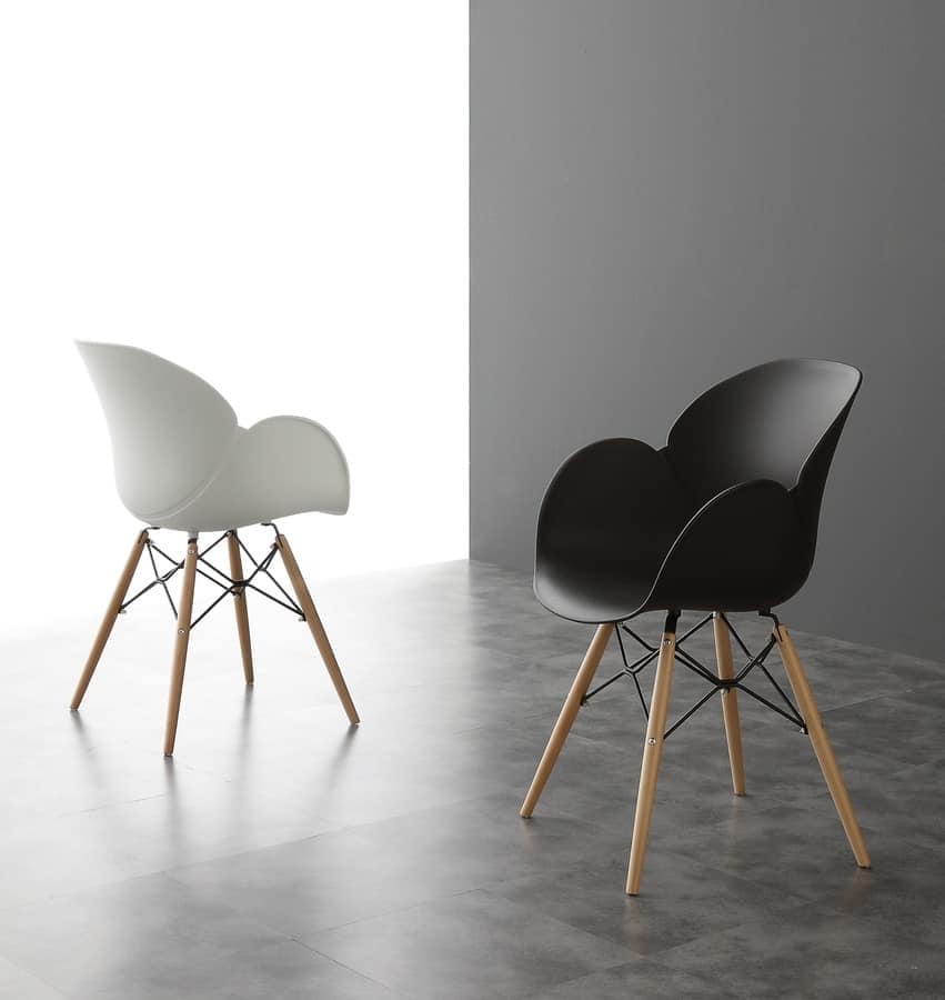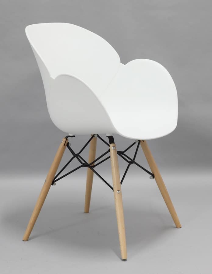 Chaise élégante avec coque en polypropylène, des jambes de bois