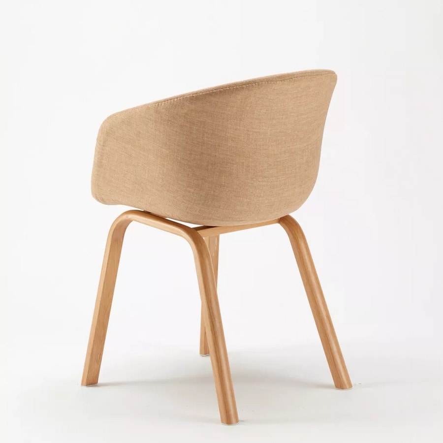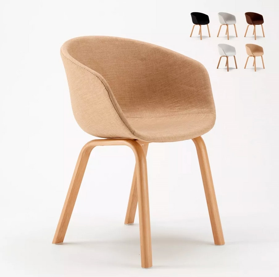 Komoda est une chaise de design avec assise ergonomique recouverte en tissu et pieds en métal avec effet bois. Parfaite pour cafétéria et bar ou pour salle d'attente et bureau. Cette chaise propose un design scandinave avec une ligne originale. Le dossier qui enveloppe entièrement le dos en fournissant un support ergonomique et en remplaçant les accoudoirs se révèle aussi utile que confortable.