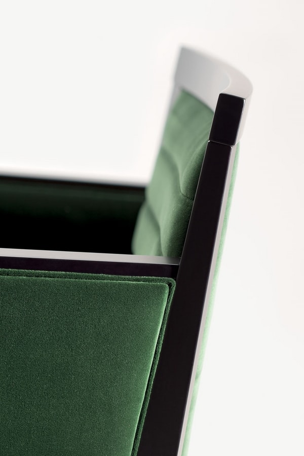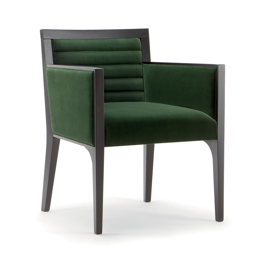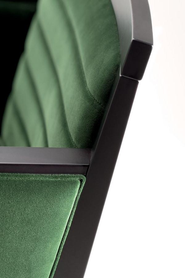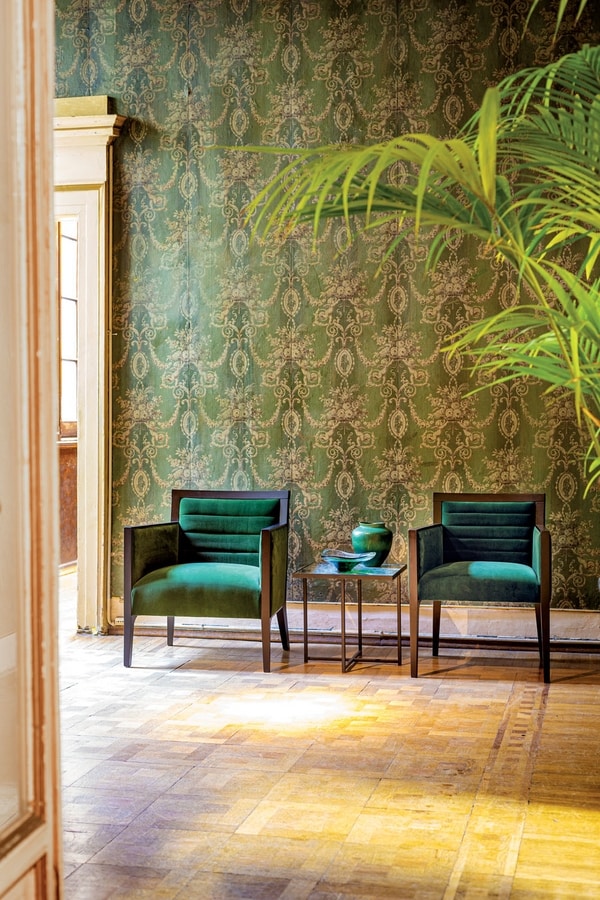 Un goût du 20ème siècle rejoint la formalité contemporaine dans une fusion harmonieuse de bois, de tissu et de métal. Le fauteuil Ginevra est la solution parfaite pour meubler les hôtels et les restaurants. Le cadre en bois massif et les pieds tiennent un dossier et une assise rembourrés. Avec la possibilité de choisir parmi une grande variété de finitions et de tissus en bois, ce modèle peut être personnalisé pour s'adapter parfaitement à chaque lieu.