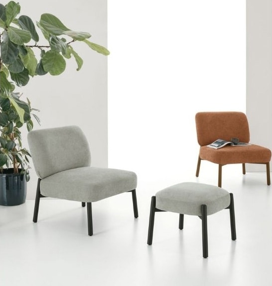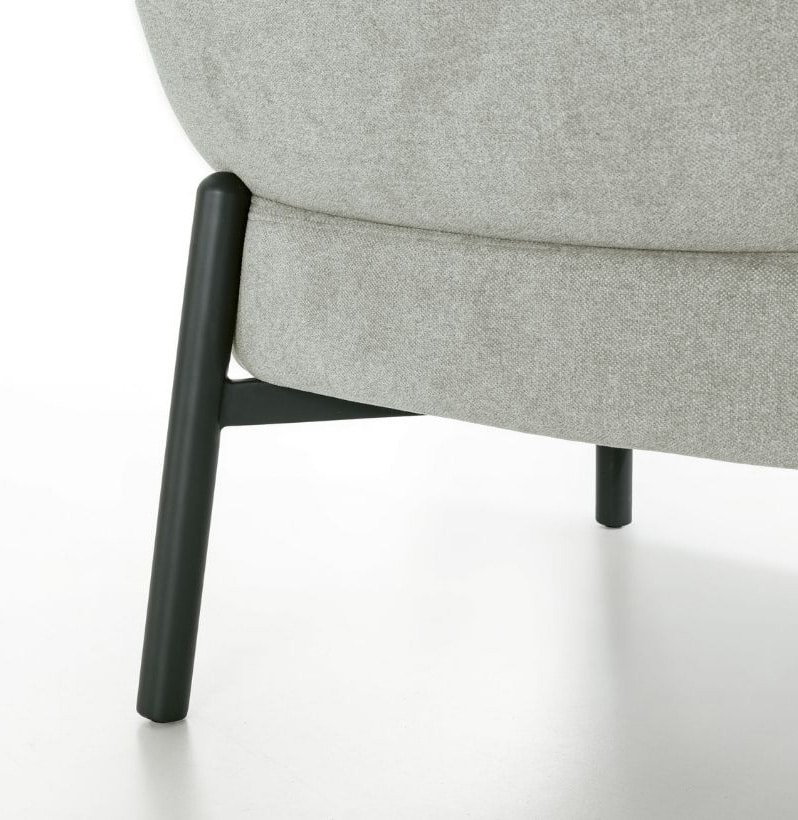 Fauteuil Kanto avec structure en métal peint et revêtement Mellow Blend. Assise capitonnée accueillante pour créer des espaces détente élégants.