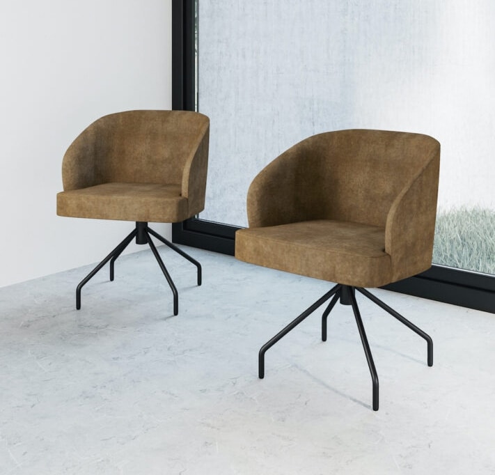 Le confort de Onda enveloppe complètement et tout au long du temps, du dossier rembourré en polyuréthane, aux accoudoirs, jusqu’à l’assise. Le piètement est disponible en cinq différentes solutions.