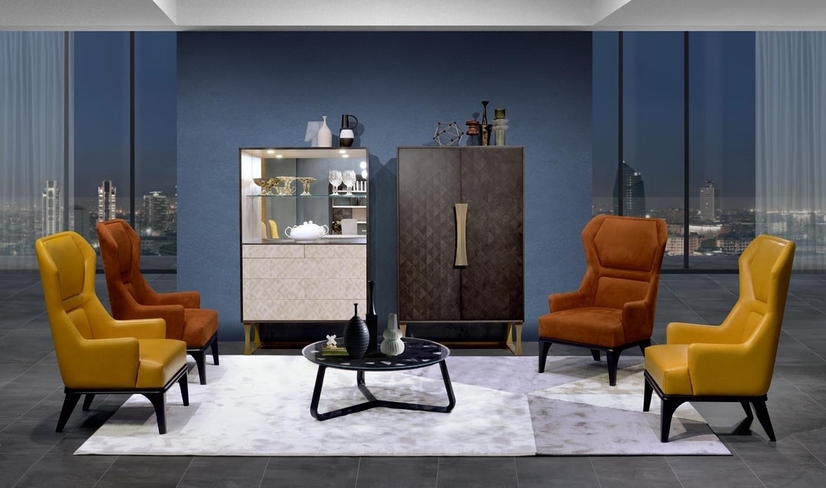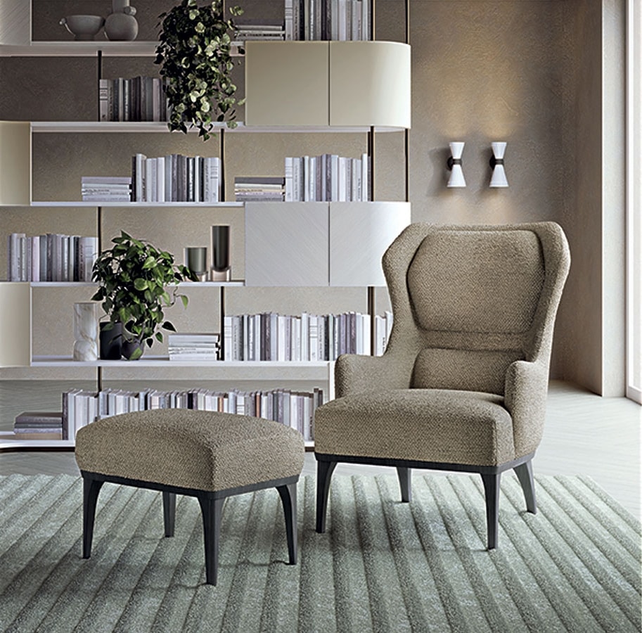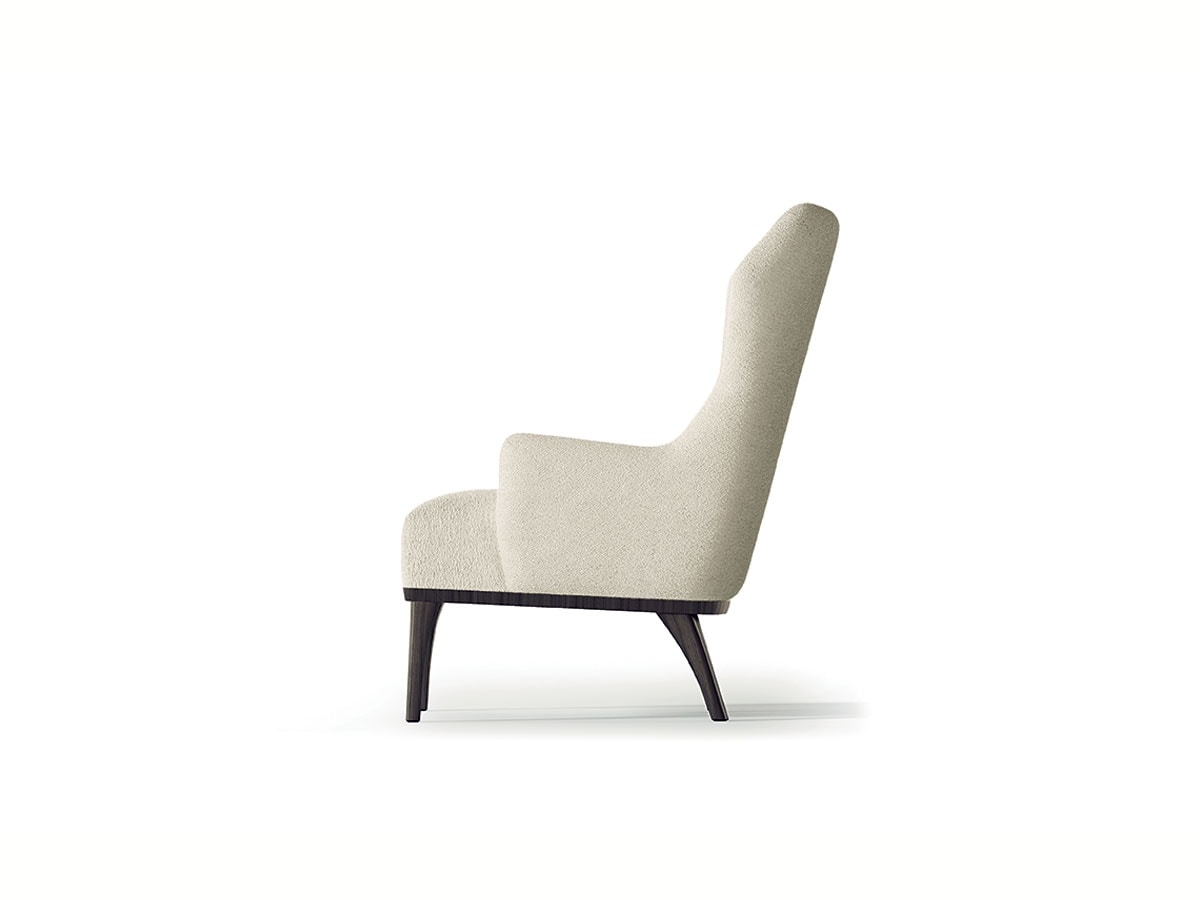 Bergère de la ligne Ara, structure interne en bois, rembourrage en polyuréthane multi-densité, pieds