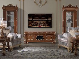 Meuble de télévision, un style luxueux classique, avec des sculptures et des incrustations