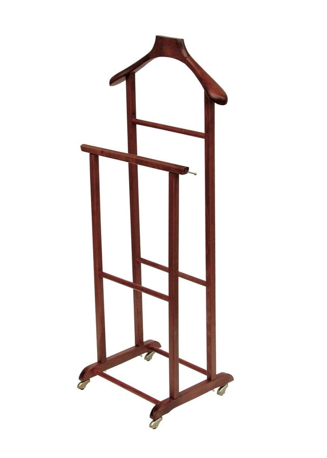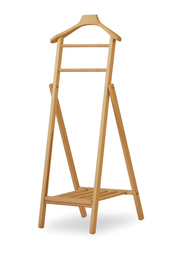 Valet de nuit tout-en-un, pratique et pliable. Un accessoire pratique à utiliser aussi bien à la maison qu’à l’hôtel. Structure en bois de hêtre, fournie avec cintre et repose-pantalon.