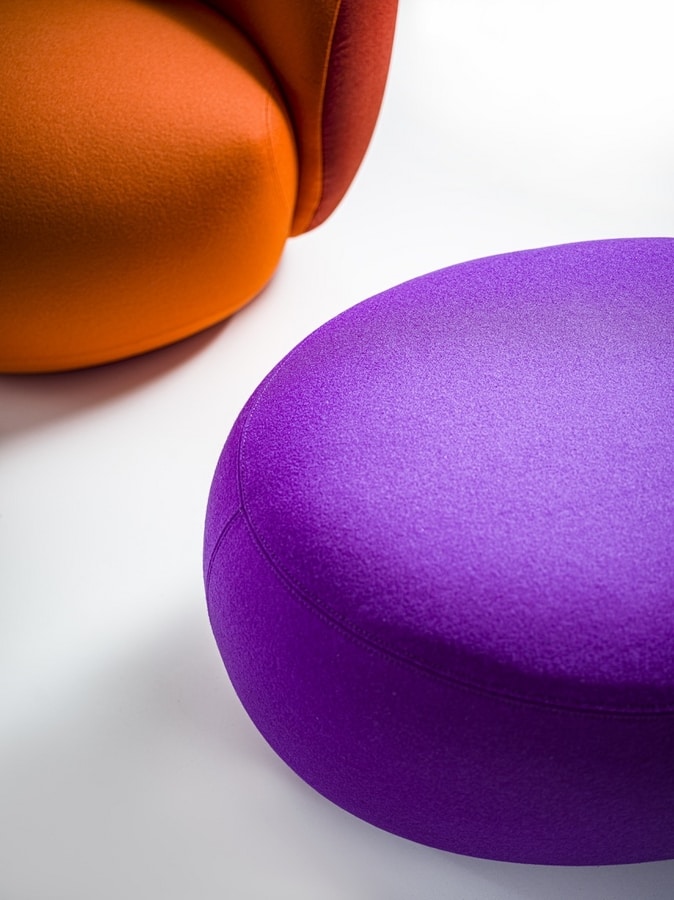 Par contre, le pouf, qui a une forme moins complexe, est réalisé en unissant plusieurs couches de mousse de polyuréthane de 30 Kg/m3 avec une épaisseur moyenne de 40 mm.