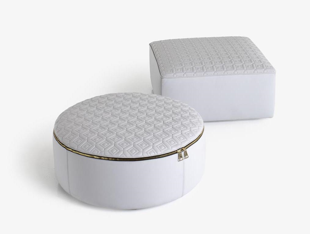 Notre sélection de poufs personnalisables aide le concepteur à meubler différents espaces. Tous les poufs ont en commun notre production avec une méthode artisanale dans un cadre en bois rembourré. Neyo peut être enrichi avec une fermeture à glissière en métal ou simplement présenté avec une broderie de quilting innovante.