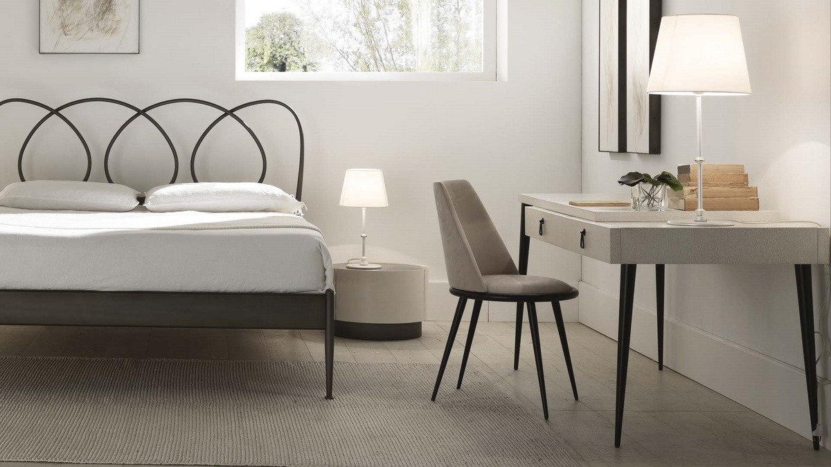 Bureau en contreplaqué, pieds en métal conique