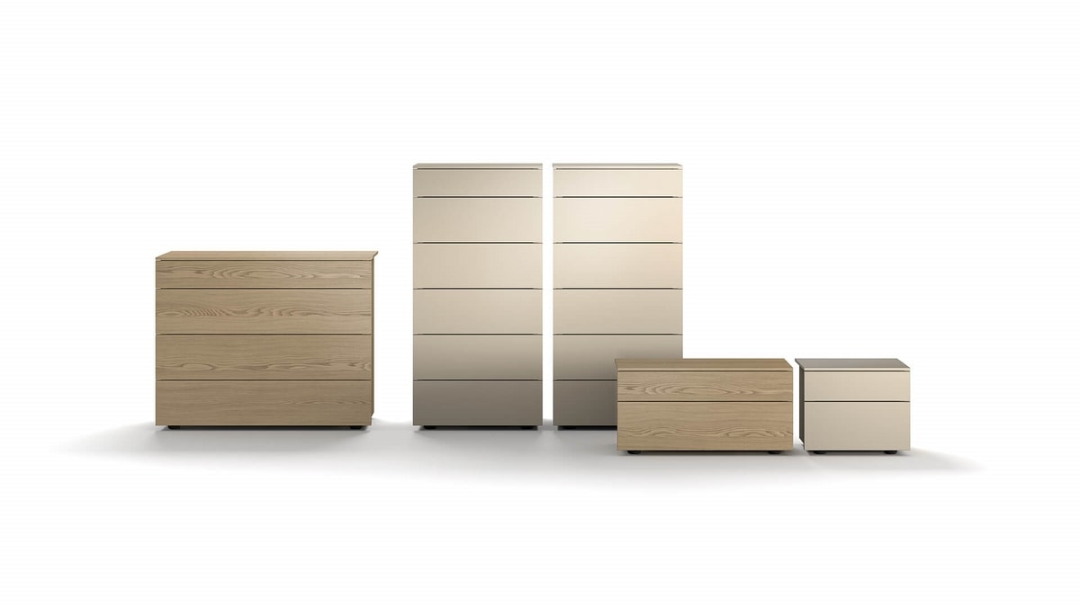 Wide présente une ouverture latérale, les panneaux avant étant plus larges que la structure. Le plateau a une épaisseur de 1,2 cm. Le premier tiroir supérieur a une hauteur inférieure. Ligne de tables de chevet et commodes avec une grande flexibilité de composition. Ils peuvent être combinés avec d’autres compléments. Les structures, plateaux et façades de tiroirs sont disponibles dans les finitions Elli. Les tiroirs sont personnalisables avec un fond en tecnoleather et des divisions de rangement internes. Blocs à tiroirs antichocs décélérés, système d'auto-installation à dégagement rapide, réglage en hauteur. Grande liberté dimensionnelle: 6 hauteurs, 5 largeurs, 2 profondeurs standards, sur mesure.