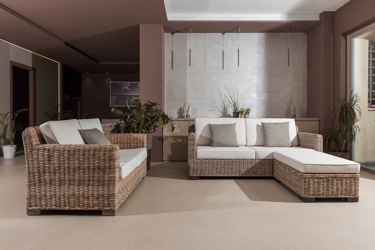 Ensemble de salon de terrasse et de jardin, en rotin naturel
