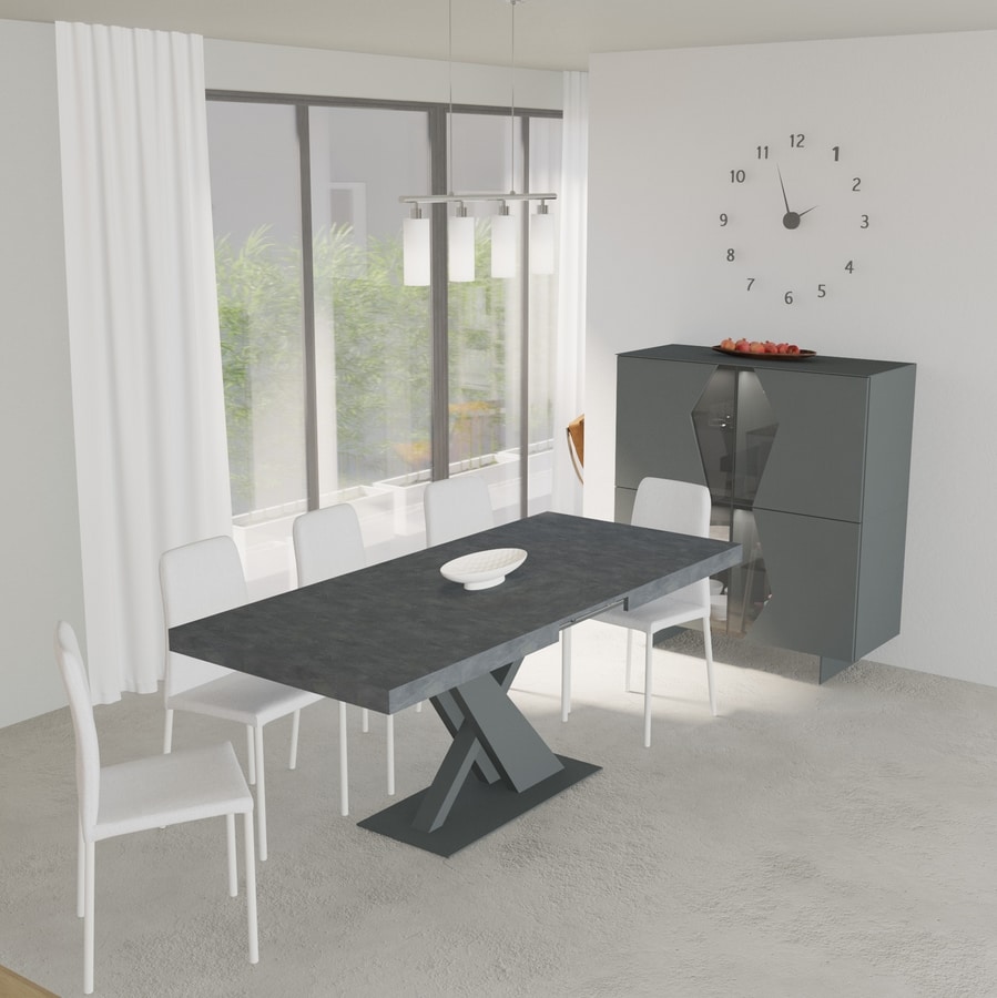 Toutes les tables disposent d'un mécanisme d'extension synchrone, s'étendant de 160 à 240 cm pour accueillir confortablement 4 à 12 personnes. Les deux rallonges, assorties au plateau de table, sont soigneusement rangées dans un compartiment sous la surface. Cet espace sous le dessus peut également être utilisé pour ranger des couverts, du linge de table ou d'autres essentiels de salle à manger.