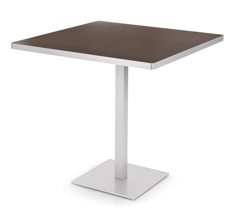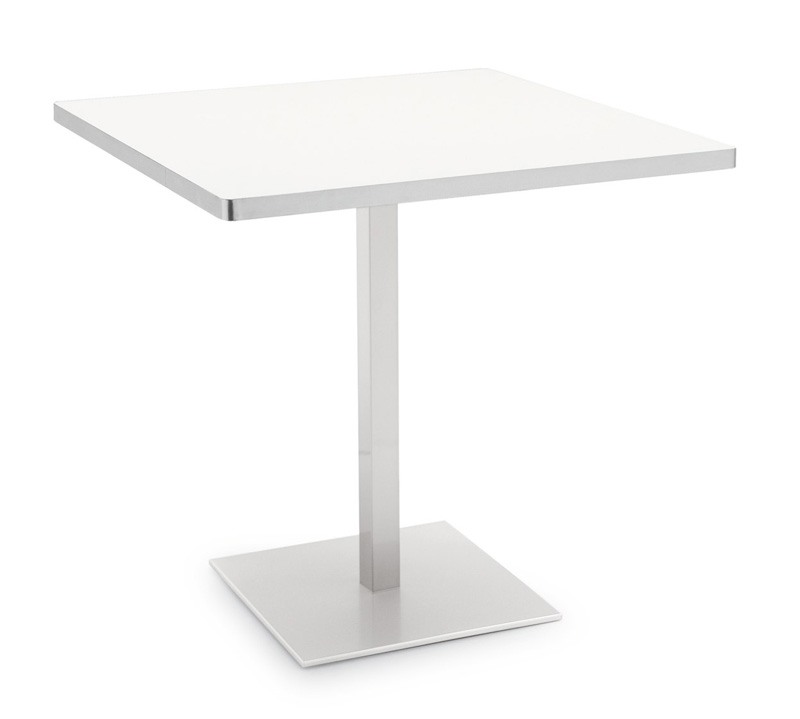 Table carrée avec base en acier et plateau en mélamine