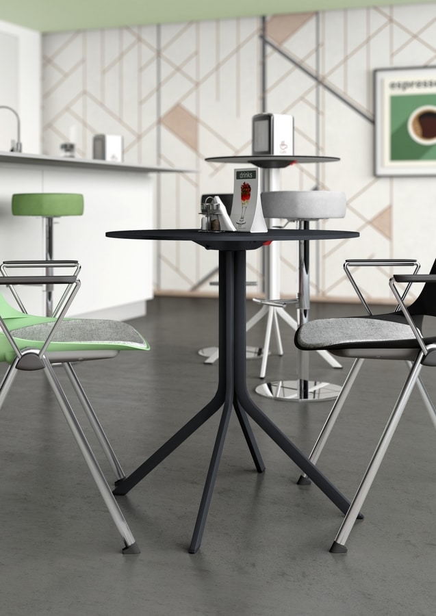 Demander prix Produits similairesVous êtes propriétaire d'un bar, d'un wine-bar, d'un bistrot, d'une pizzeria ou d'un restaurant? Vous recherchez des tables hautes rondes avec plateau rabattable pour servir un café ou une boisson? Les tables Artika peuvent être définies comme des accessoires d'ameublement fonctionnels, au design non conventionnel et original; elles sont disponibles en tant que tables hautes de bar et tables basses rondes, elles ont un plateau fixe ou pliant qui se replie au moyen d'un bouton pratique placé sous la surface d'appui. Une fois pliées, les tables peuvent être empilées verticalement et placées le long d'un mur ou déplacées dans une autre pièce. La famille de tables Artika est caractérisée par une surface ronde d'un diamètre de 1200 mm, 790 mm et 690 mm, un cadre en acier et des joints en aluminium moulé sous pression. La base à trois pieds est constituée d'un tube d'acier de 35 mm de diamètre chromé ou peint avec des poudres époxydes noires ou blanches, avec un design unique et distinctif qui convient aux bar-bistros, restaurants, pizzerias et wine-bars.