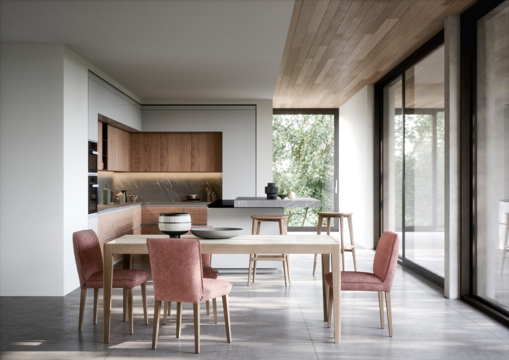 Inside est une table extensible en bois, un ouvrage artisanal prisé. Le pied effilé et facetté, l’adhésion parfaite de ses surfaces. Le plateau est proposé en différents matériaux : bois, Fenix, Hpl et Laminam.