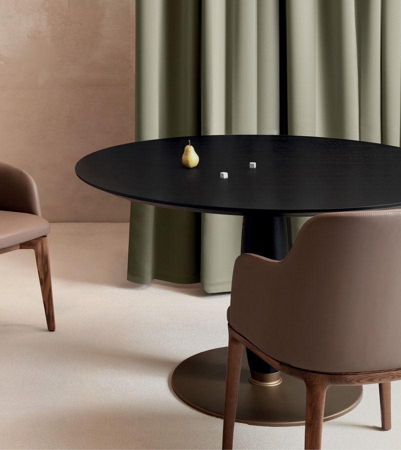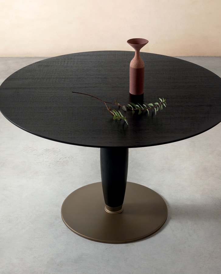 Il Viaggiatore est une collection de tables mises à part par sa base de colonnes pour les sommets ronds ou carrés et la double base pour les dessus rectangulaires. La base du disque métallique complète la colonne de cendres solide et brossée, lui donnant son style unique et opulent. Tout en semblant simple, la conception d'IL Viaggiatore dégage de la personnalité dans tout cadre qu'elle occupe.