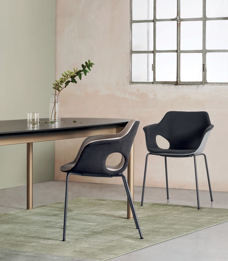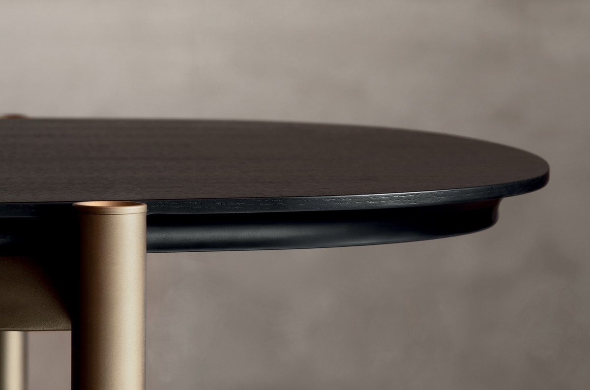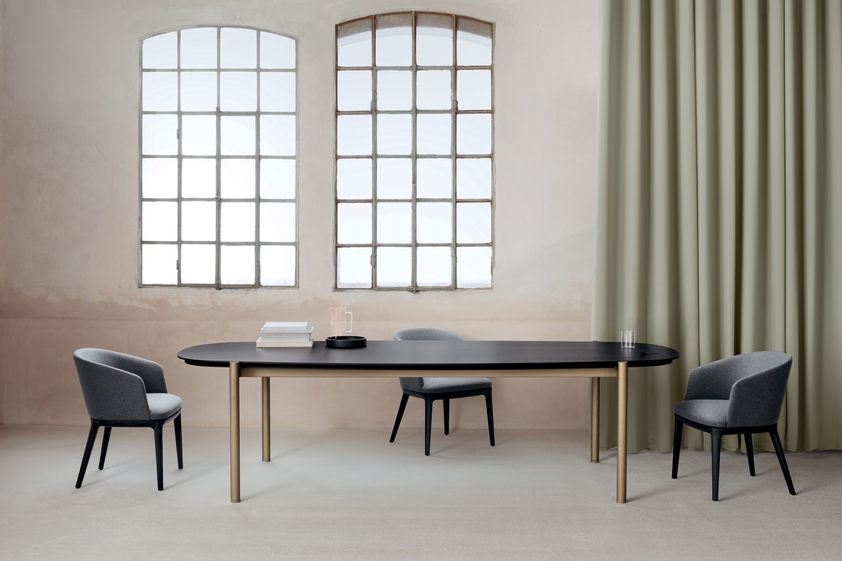 Novembre est une collection de tables conçues pour orner les grandes salles à manger ou les salles de réunion élégantes. Cette proposition d'ameublement captive ses éléments soigneusement équilibrés: un haut en forme de baril avec un placage de cendres et des coins arrondis, associés à des jambes rondes positionnées à l'extérieur vers le haut. Cet arrangement stabilise non seulement le tableau, mais il le fait avec grâce.