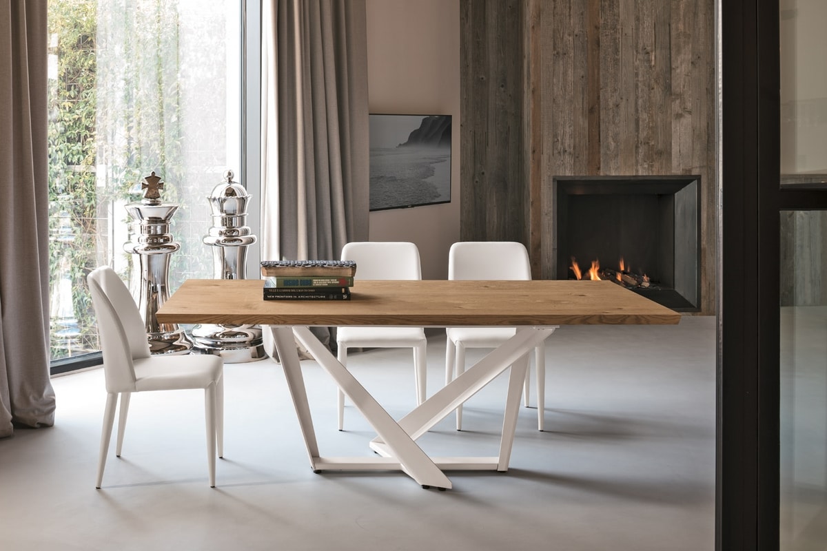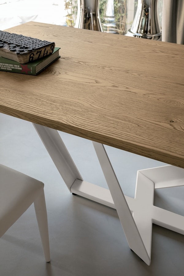 Table non-extensible avec structure en fer peint ou brossé et plateau rectangulaire en MDF plaqué bois.
