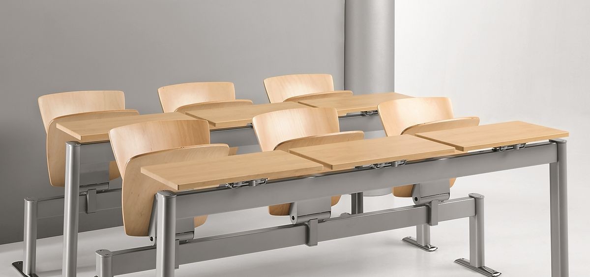 Disponible version chaise/table sur poutre avec assise et plateau rabattables, 2 ou 3 places.