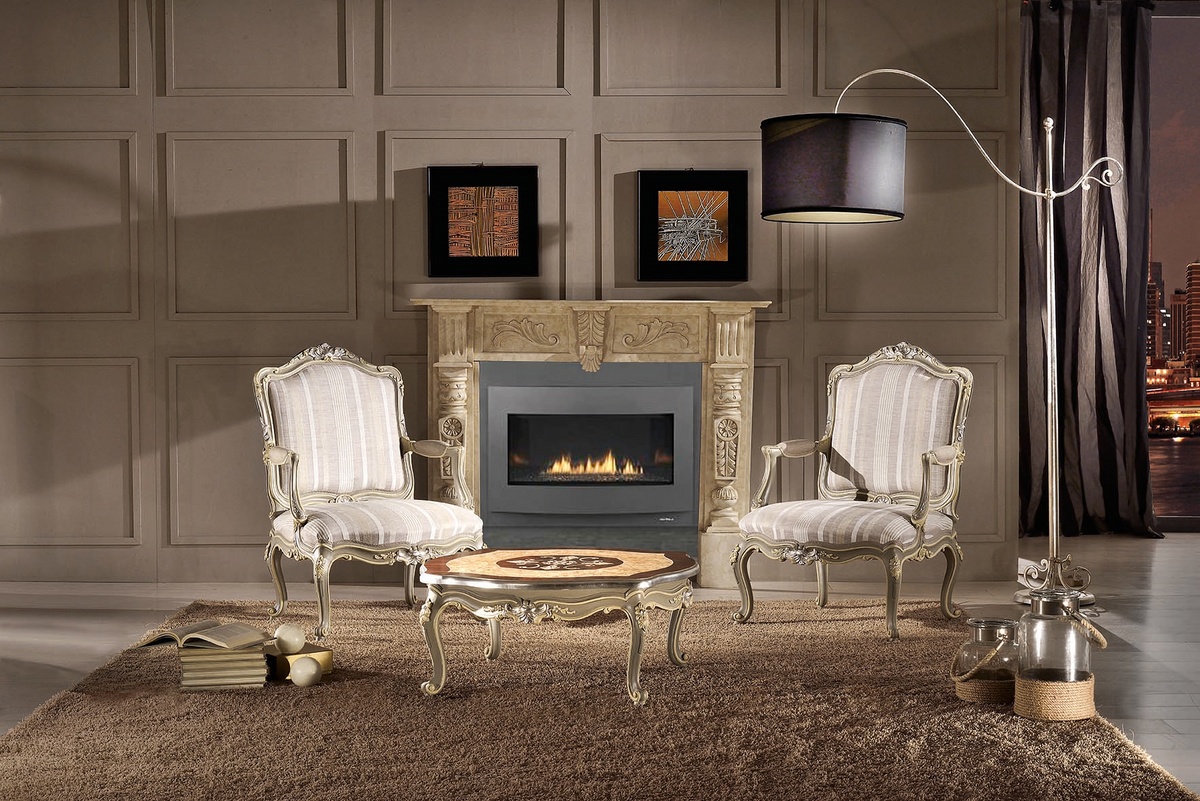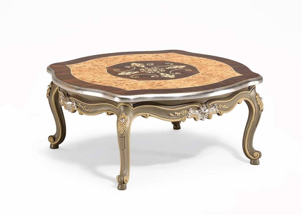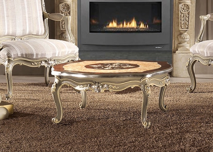 Table basse sculptée et incrustée à la main, dans un style classique