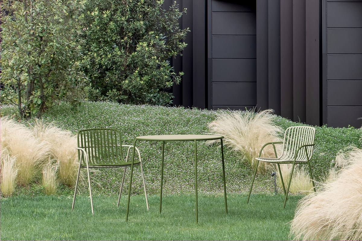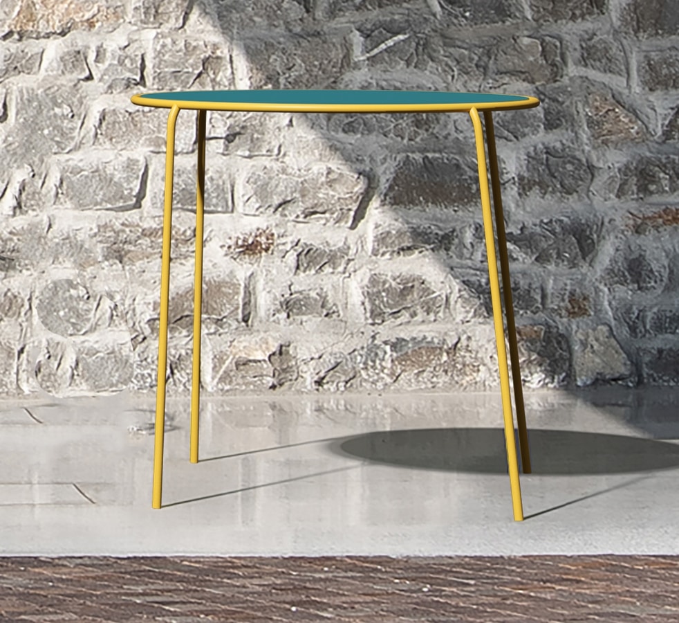 Table empilable en acier pour une utilisation en plein air, disponible en différentes couleurs et également en version bipolaire.