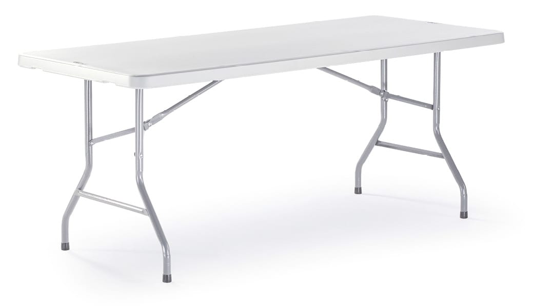 Table pliante avec structure en acier et plateau en HDPE d'une épaisseur de 50 mm. Couleur Blanc / Granit