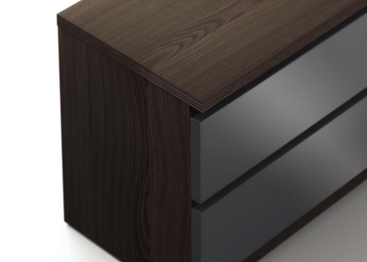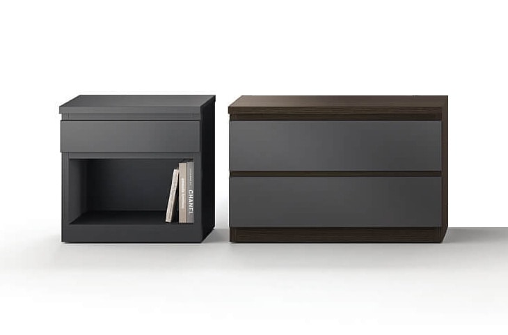Base se caractérise par l'ouverture inférieure, avec la rainure creusée dans le bois massif. Il reste suffisamment d'espace de cm 2 entre les tiroirs. Le plateau a une épaisseur de 2,5 cm. Le système de base comprend des tables de chevet, des commodes et des armoires avec une grande flexibilité de composition. Il existe également des éléments doubles et des modèles avec porte ou étagères. Les structures, plateaux et façades de tiroirs, réalisés avec des composants en bois massif, sont disponibles dans toutes les finitions Elli. Il est possible d'utiliser des tiroirs avec verre ou panneau inséré dans le cadre. Il est possible d'installer un tiroir secret magnétique dissimulé. Les tiroirs sont personnalisables avec un fond en cuir tecno et un compartiment de rangement interne. Caissons à tiroirs antichocs décélérés, système d'auto-installation à dégagement rapide, réglage en hauteur. Liberté dimensionnelle extrême: 6 hauteurs, 5 largeurs, 2 profondeurs standards, sur mesure.