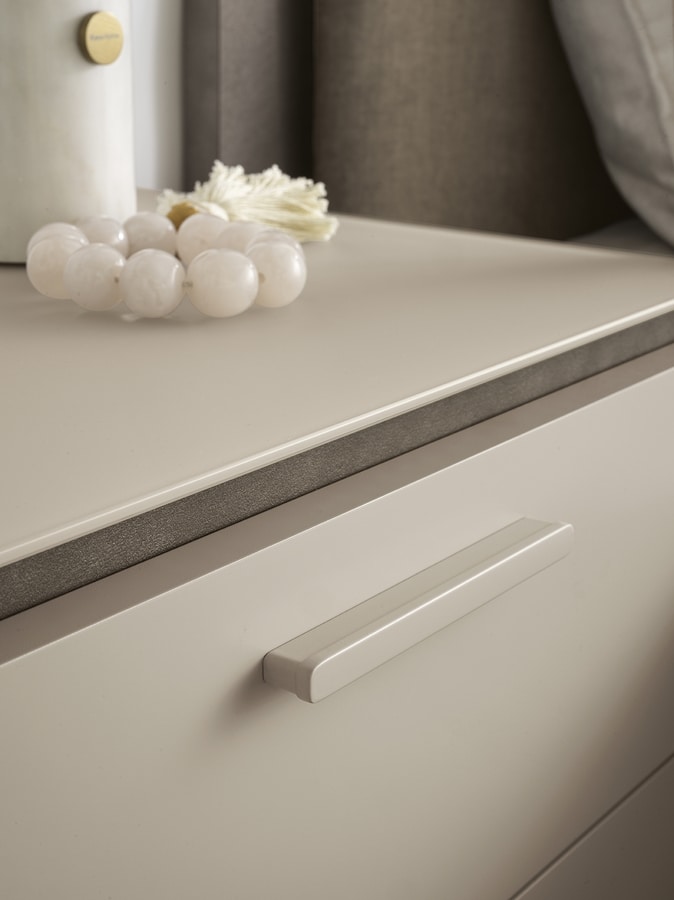 Demander prix Produits similairesDans la zone nuit, les détails révèlent l'âme plus intime de la collection Perla: plateaux en verre satiné, poignées arrondies ton sur ton créent une esthétique sobre et lumineuse, définie par un équilibre formel et une continuité stylistique raffinée.
