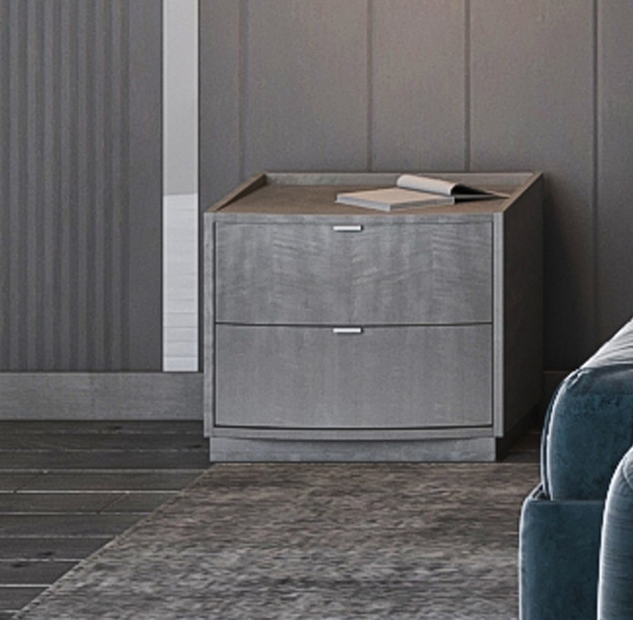 La commode et les tables de chevet Phoenix mettent en valeur la beauté essentielle du bois grâce à une finition raffinée qui enrichit la structure en érable fin et tanganika frisé.