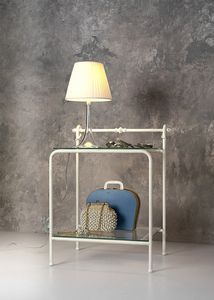 Table de chevet avec structure en fer, couvrant dans le miroir
