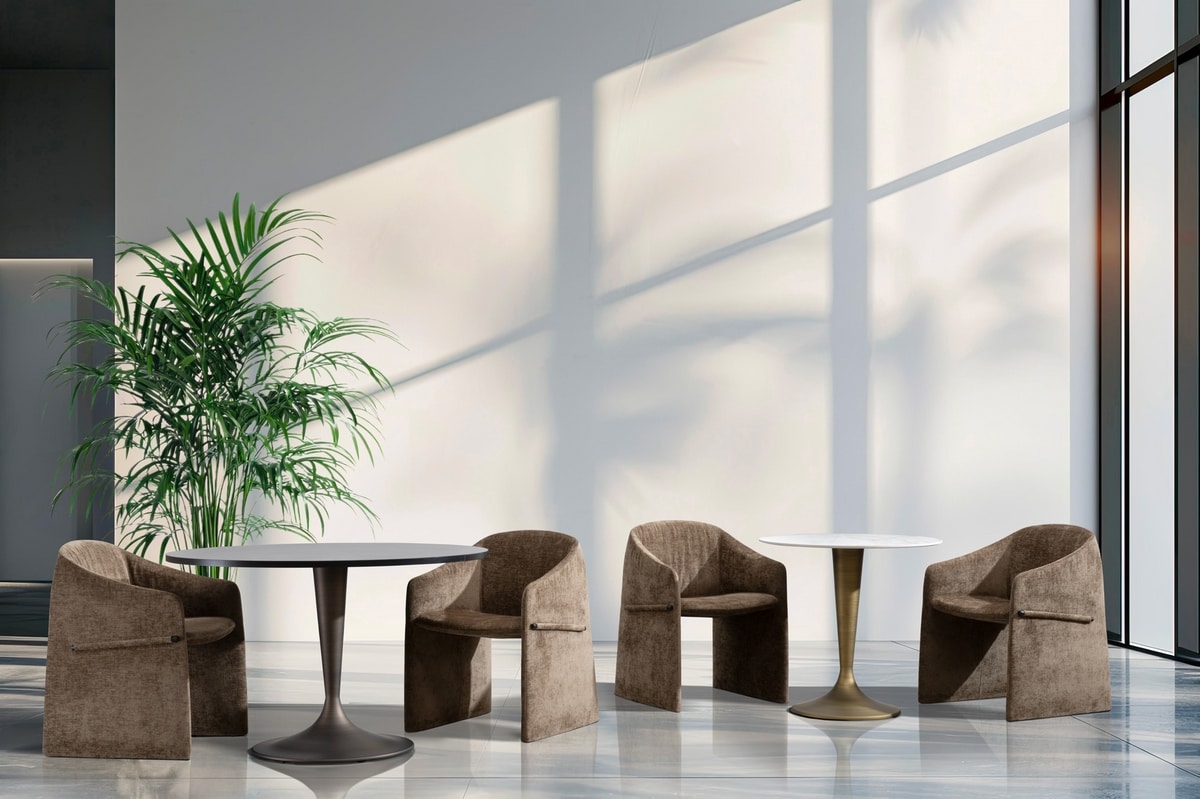 La collection de tables Glen redéfinit l'élégance des environnements intérieurs, fusionnant design sophistiqué et polyvalence maximale. La forme sculpturale de la base, dans les précieuses finitions dorées ou bronzées, contribue à donner un aspect luxueux à la table tant avec des plateaux ronds que carrés. Un choix idéal pour valoriser chaque environnement avec une touche de raffinement exclusif.
