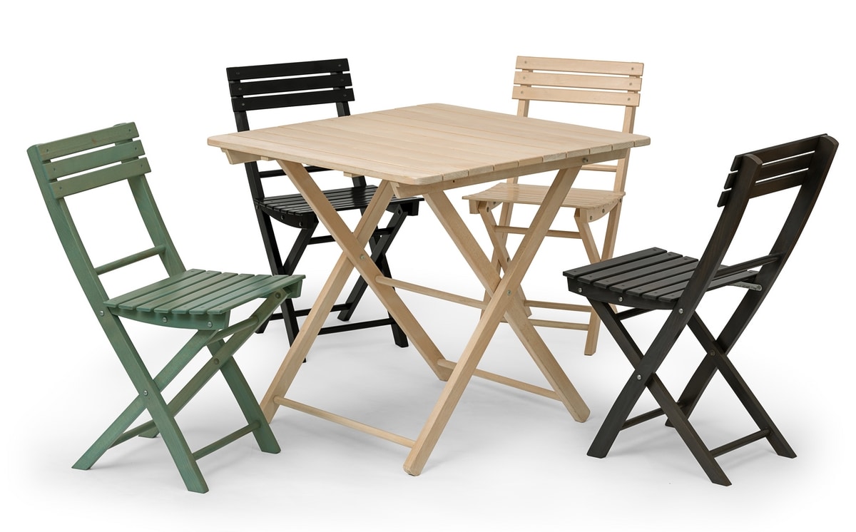 Table pliante en bois de hêtre avec plateau à lattes carrées pour l'intérieur et l'extérieur.