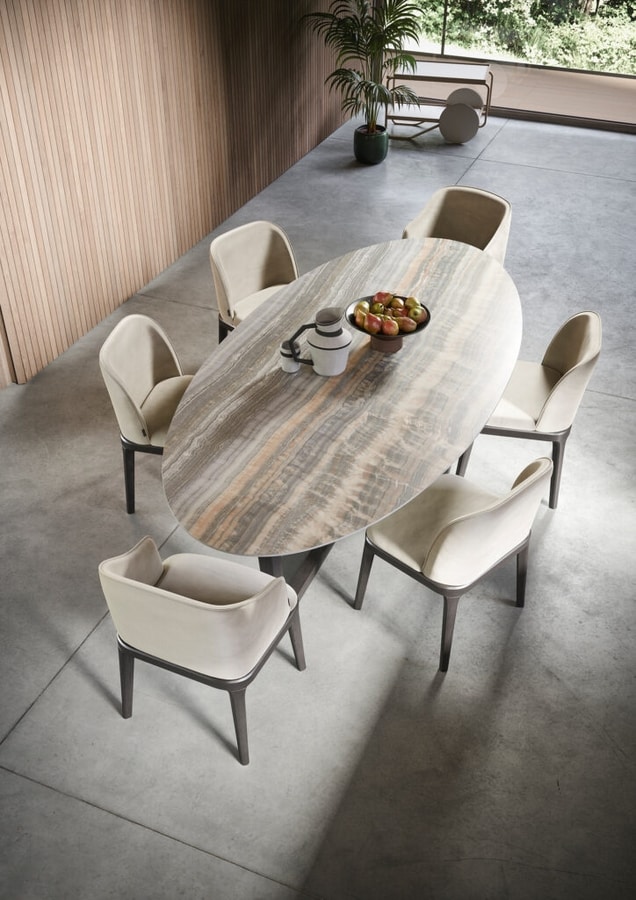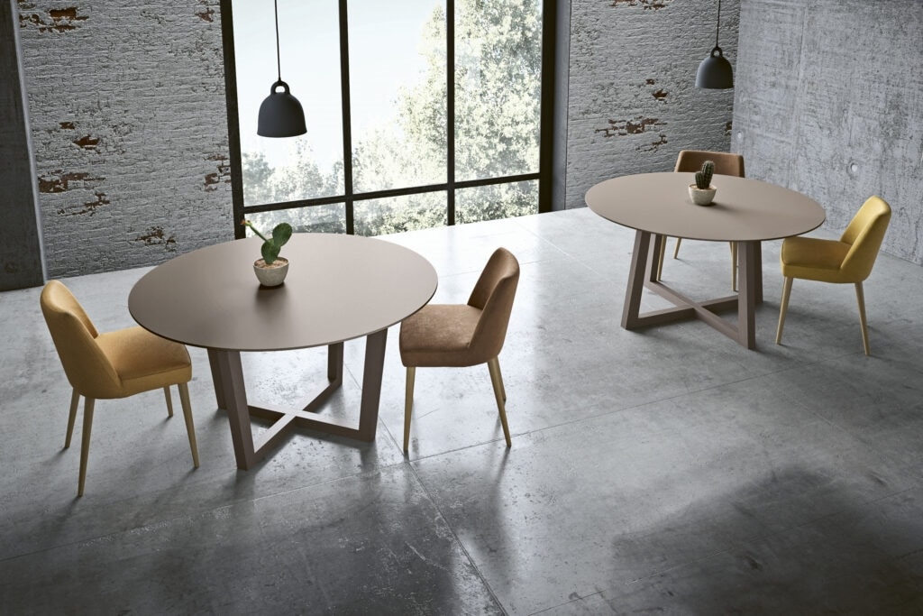 Table carrée, rectangulaire, courbe, ronde ou bien ovale; plateau également disponible avec bord biseauté à 45° et avec base de support à encastrement.