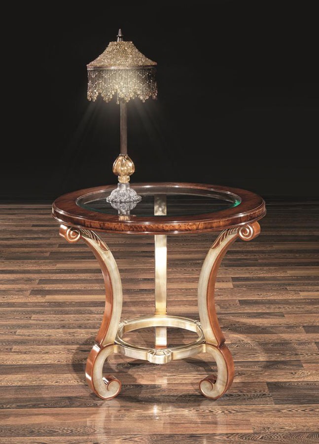 Table ronde en bois massif et en verre. 3 pieds sculptés et fini de la meilleure façon.