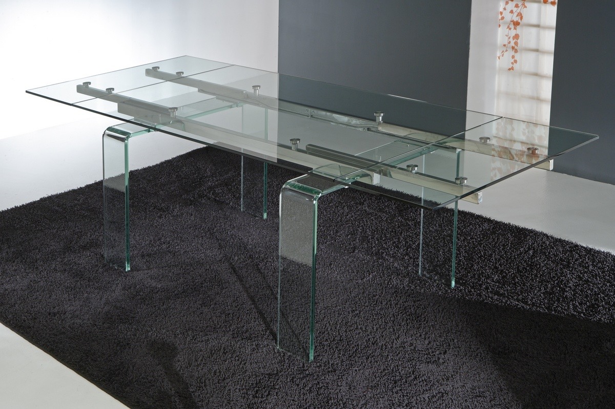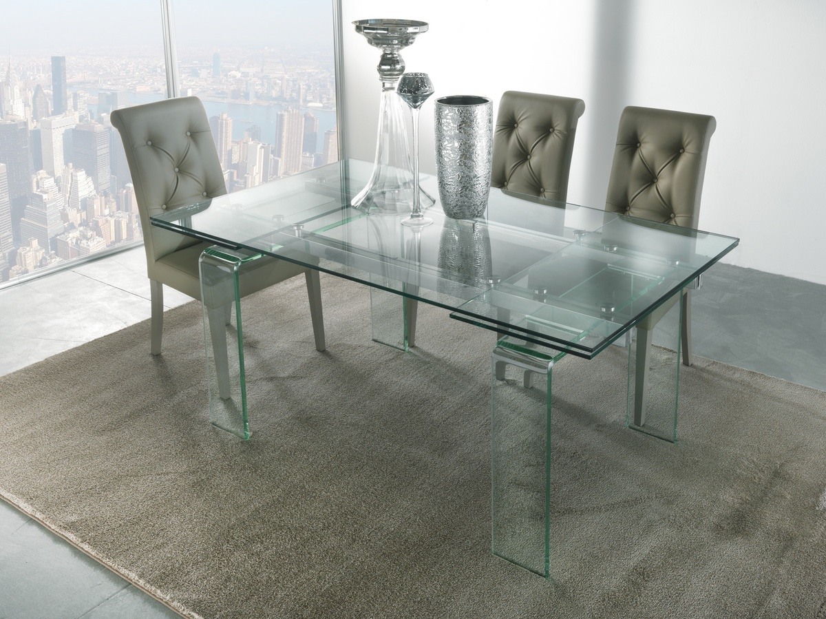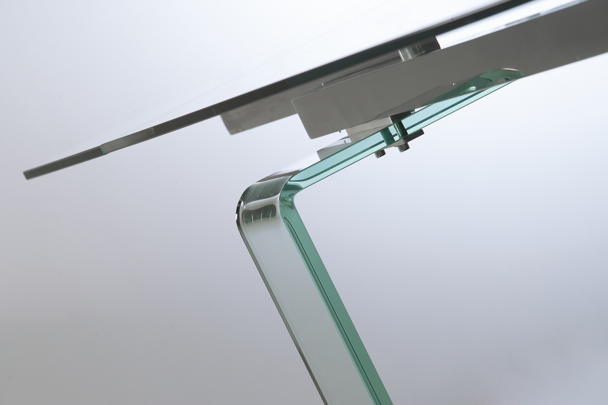 Structure en acier inoxydable poli. Trempé haut et extensions de verre clair.