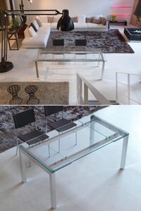 Table fixe ou extensible, avec dessus en verre