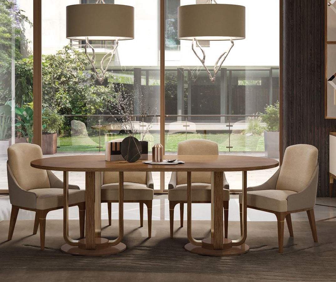 L'espace de vie se révèle lumineux et accueillant, qualités précieuses qui naissent des combinaisons réussies de l'essence de noyer, des laques claires, des métaux dorés et des tissus aux tons assortis. C'est une invitation quotidienne à la sérénité et à la détente, dans leur forme la plus recherchée.