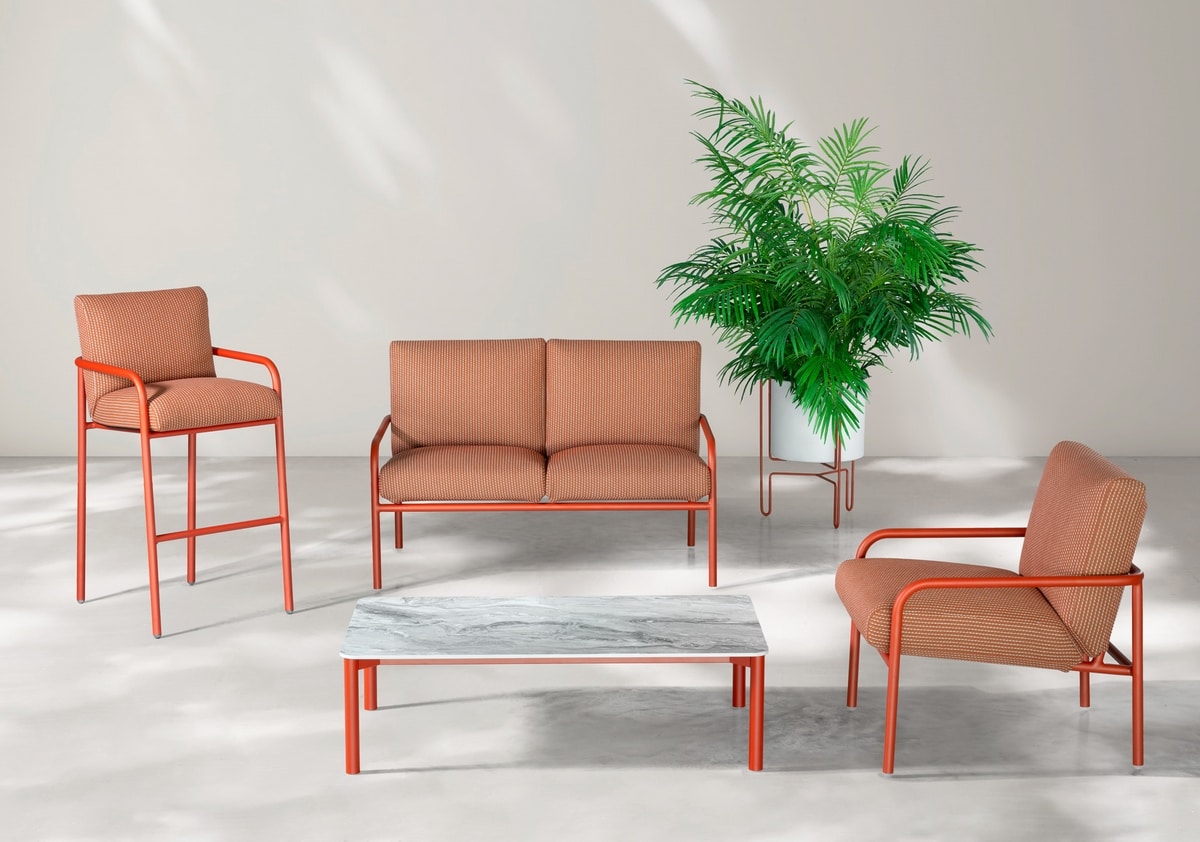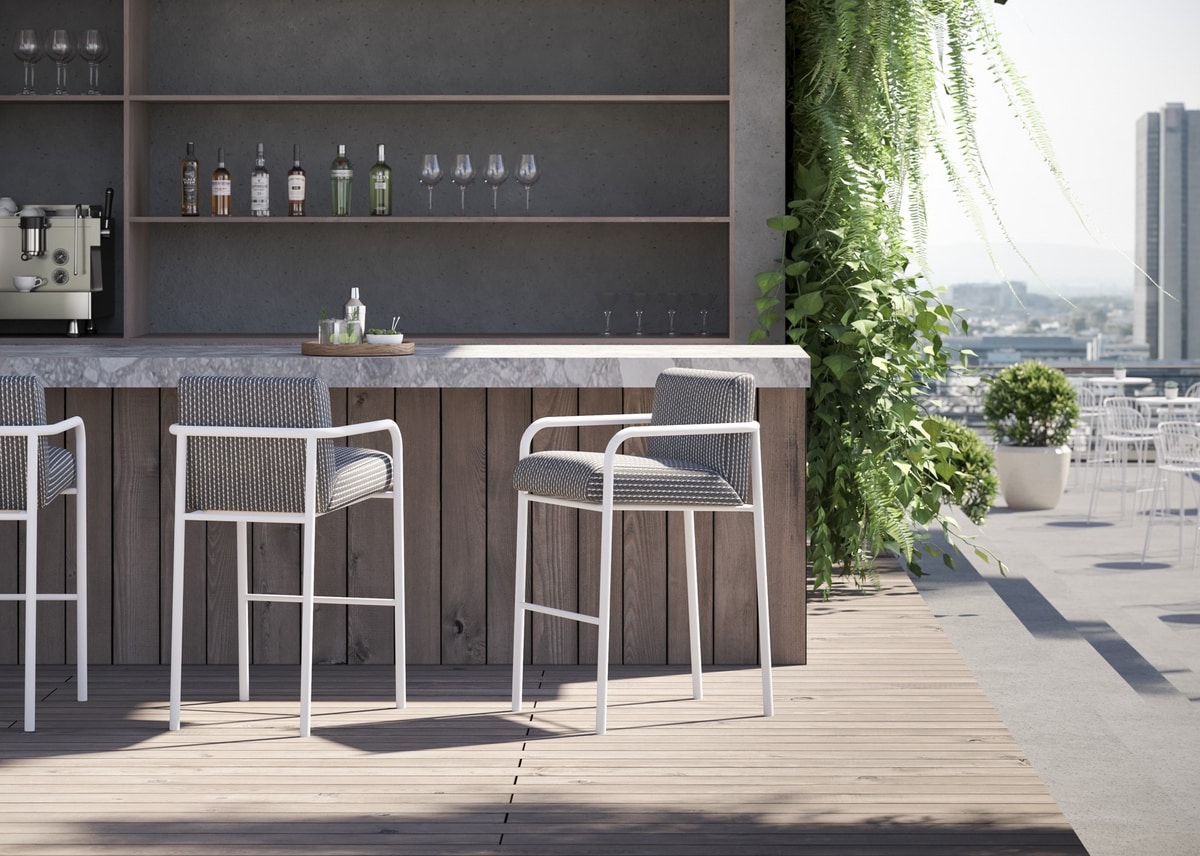 Le tabouret de la collection Pilar se caractérise par un style contemporain et un confort maximal dans l'assise. Ses formes élégantes sont idéales pour tout environnement extérieur, se distinguant par une grande élégance grâce à son design essentiel. La structure en aluminium garantit stabilité et résistance, le coussin en tissu idéal même pour l'extérieur peut être retiré, déhoussé et nettoyé facilement.