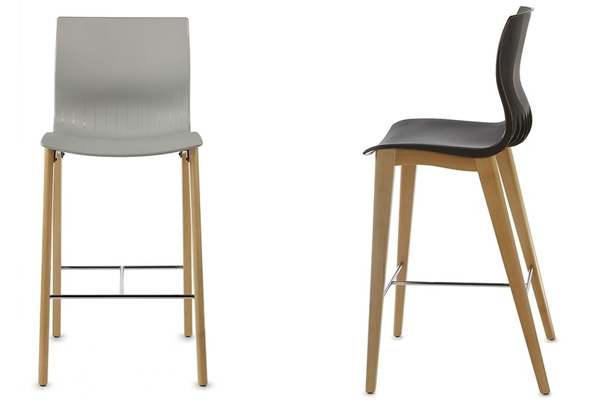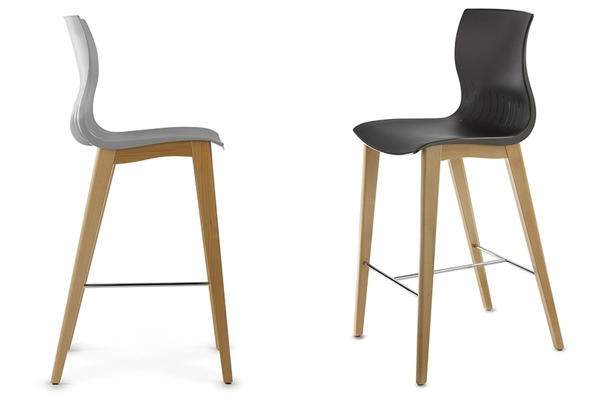 Tabouret à hauteur fixe avec quatre pieds en hêtre massif effet bouleau ou chêne ou wengé.