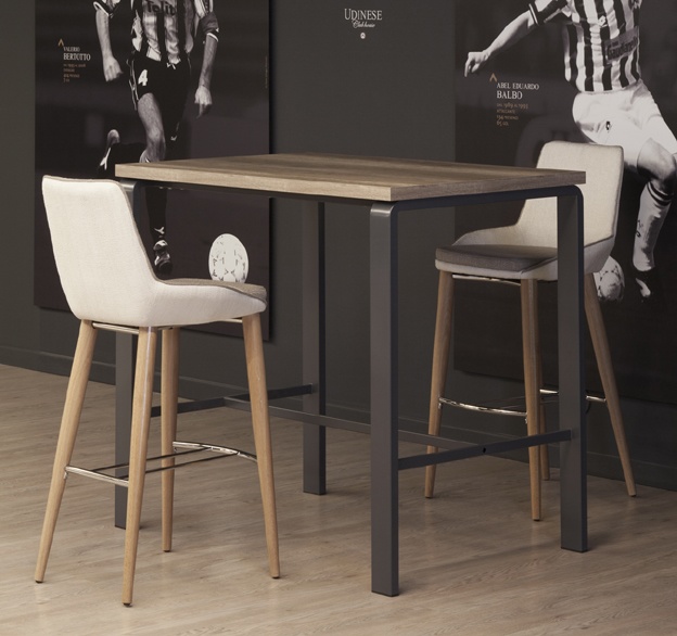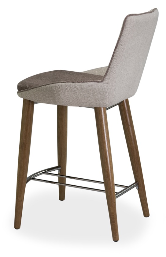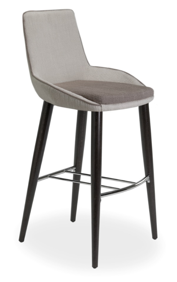 Tabouret avec structure en métal, assise et dossier rembourrés en cuir écologique (tissu enduit) ou en tissu. Disponible en deux hauteurs de siège.